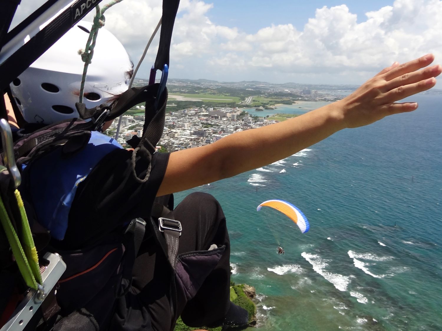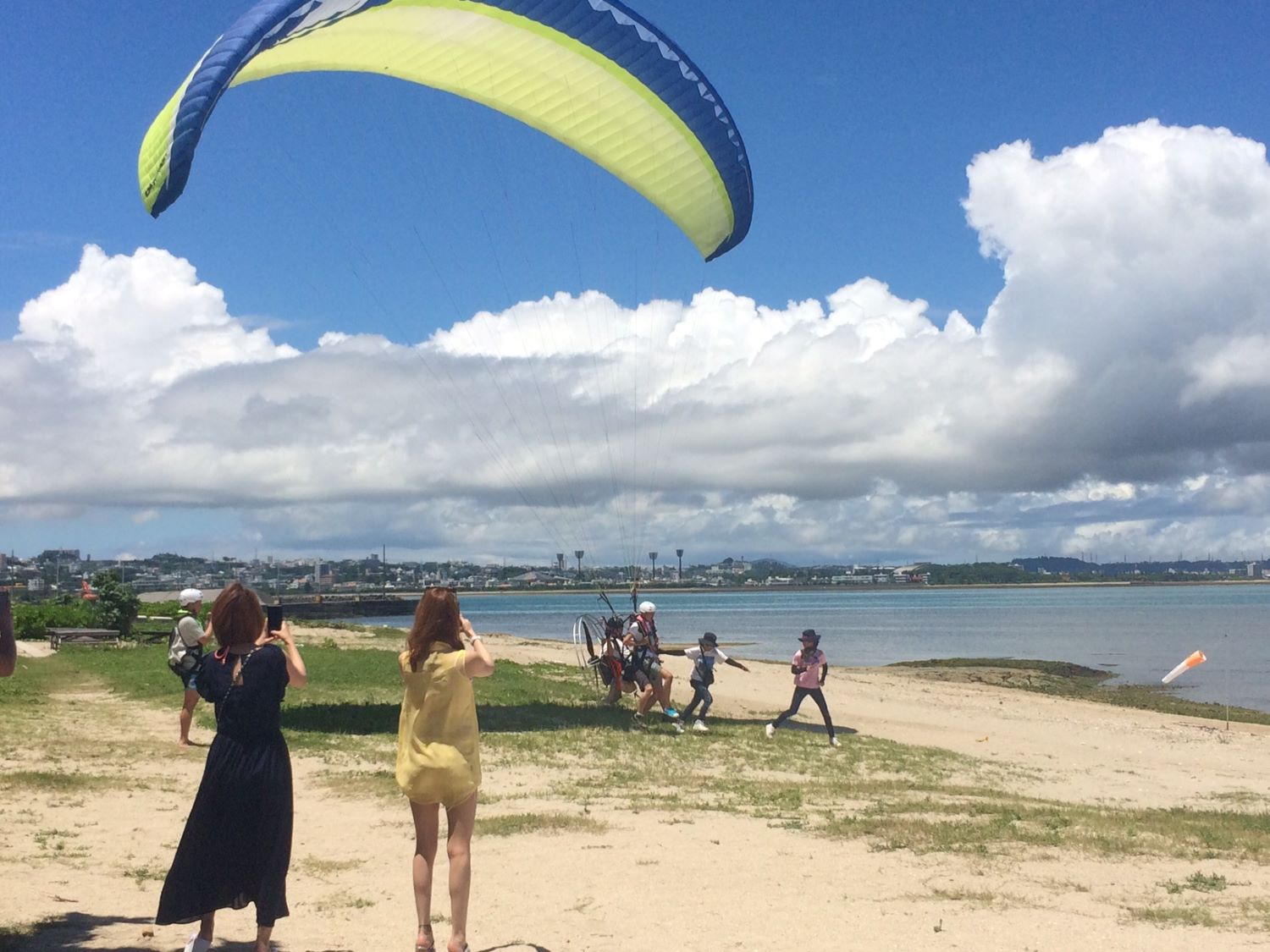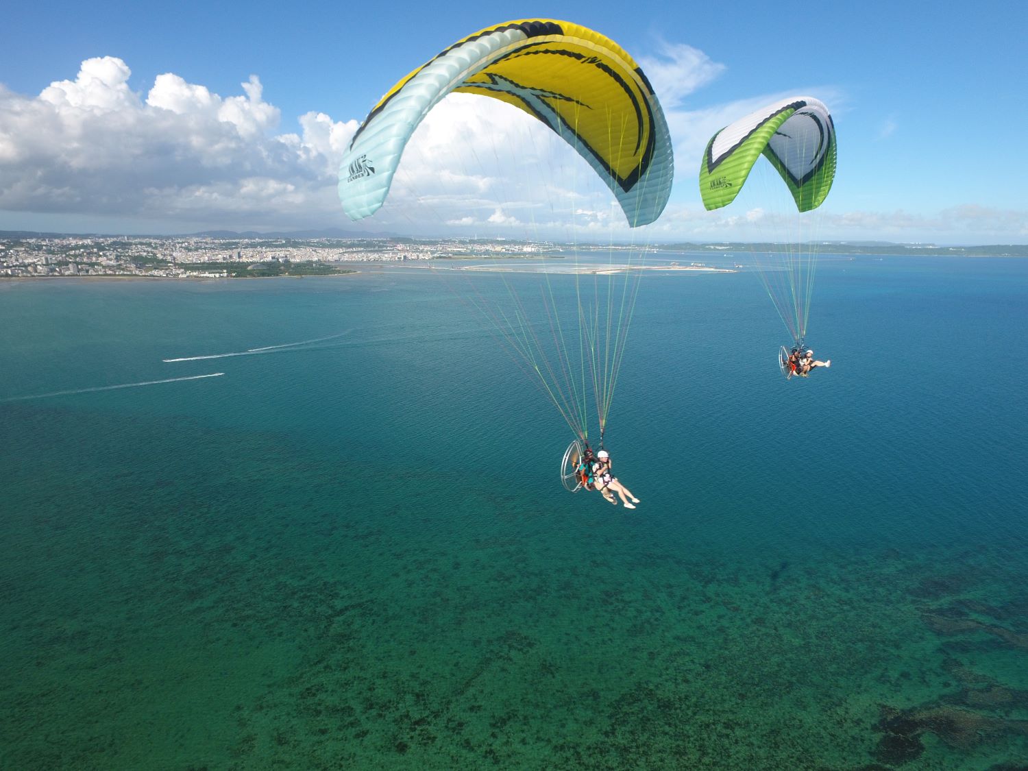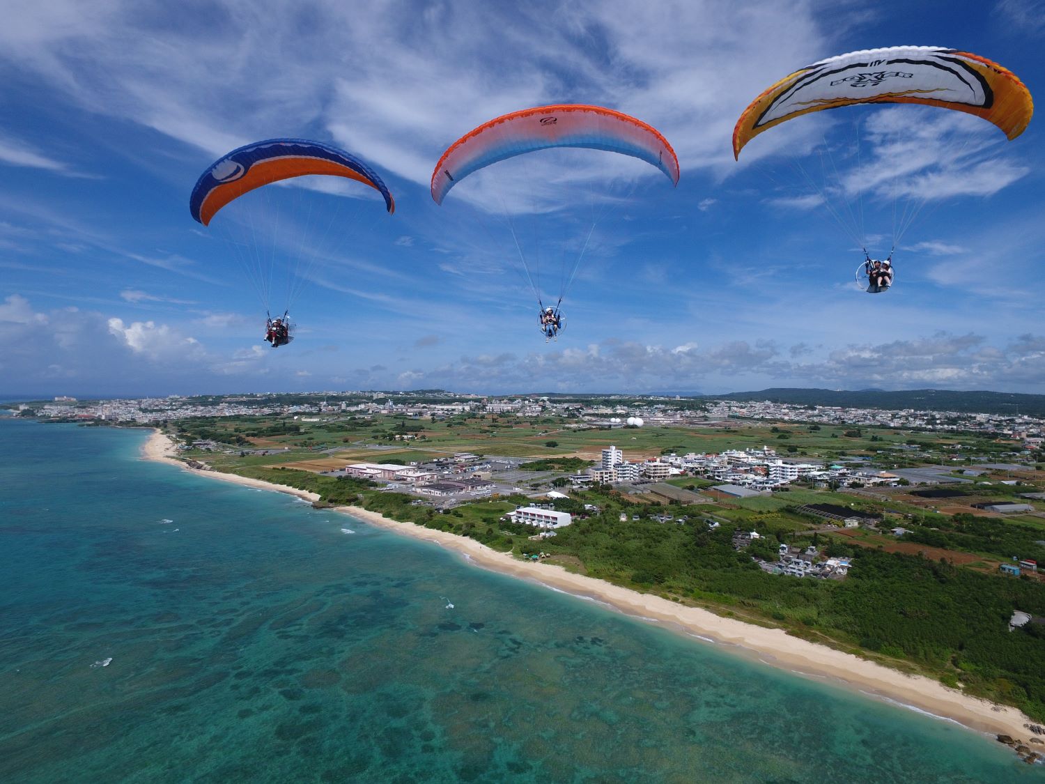 ビーチ等の平地から飛び沖縄の素晴らしいサンゴ礁や海の色、白砂が続く海岸線の景色が楽しめます!!