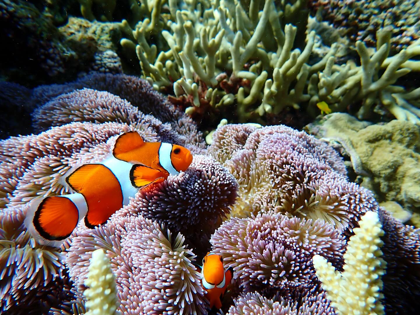 その巨大なサンゴ礁群とアカネハナゴイなど色とりどりの魚たちが息づく宮古ブルーの海には「日本のグレートバリアリーフ」と称される絶景が広がります。