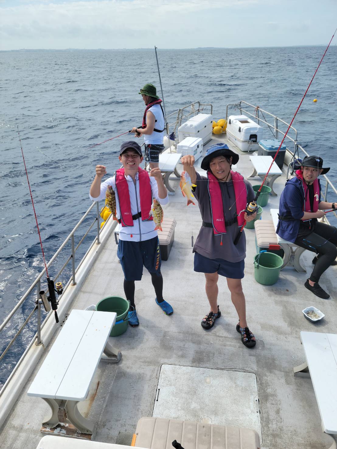 가츠오(가다랑어) 뱃살이나 꽁치 살 등을 미끼로 사용하며, 수심 30m~60m를 공략하는 시 앵커(sea anchor) 방식의 흘림 낚시입니다. 처음 하시는 분께는 낚싯대와 릴 사용법, 실제 낚시 방법을 꼼꼼히 설명해 드립니다.