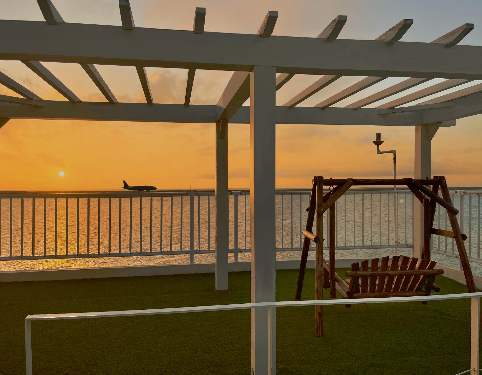 空港が近いためフライト中の飛行機を間近に見ることもでき、サンセットも見れるかも!?