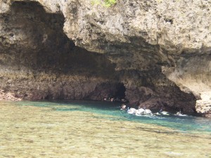 そして、インストラクターの方と一緒に洞窟まで泳いでいきます![]()