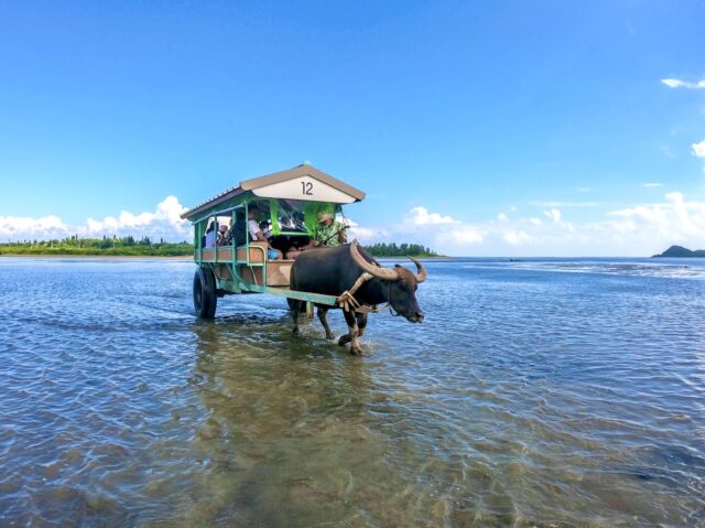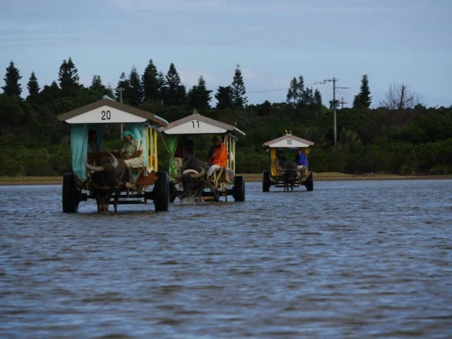 Travel to Yubu Island by traditional water buffalo cart