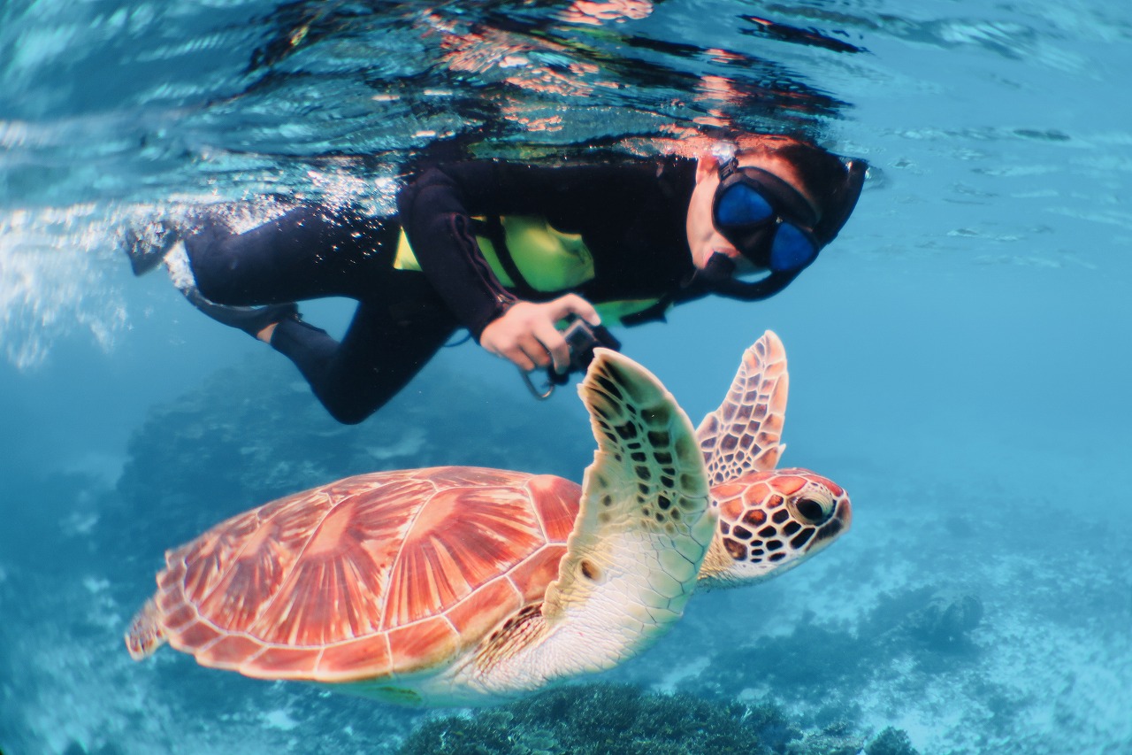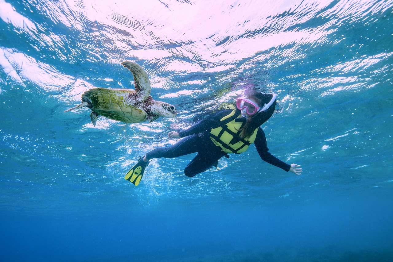 수영을 잘 하지 못 하더라도 즐길 수 있는 바다거북이와 함께하는 스노클링 투어![]()