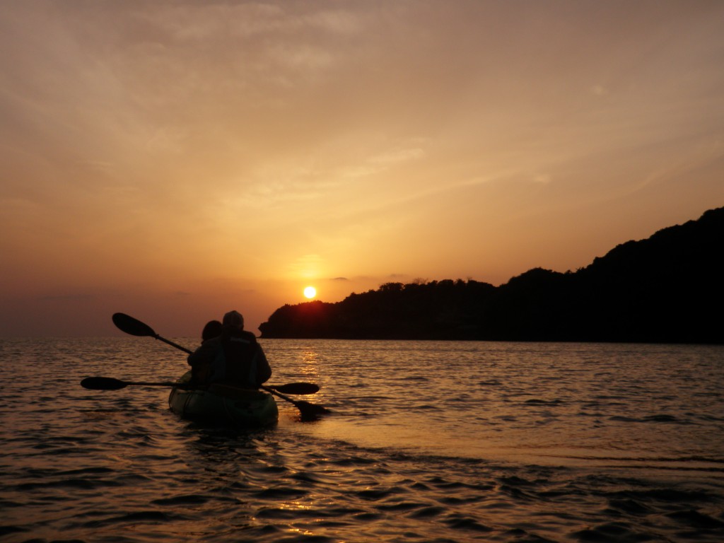 바다와 하늘이 오렌지색으로 물들어 가는 일몰의 시간을 강과 바다의 경계에서 카약을 타고 느긋하게 즐겨보세요! 다시 보지 못할 멋진 석양을 만나보세요.