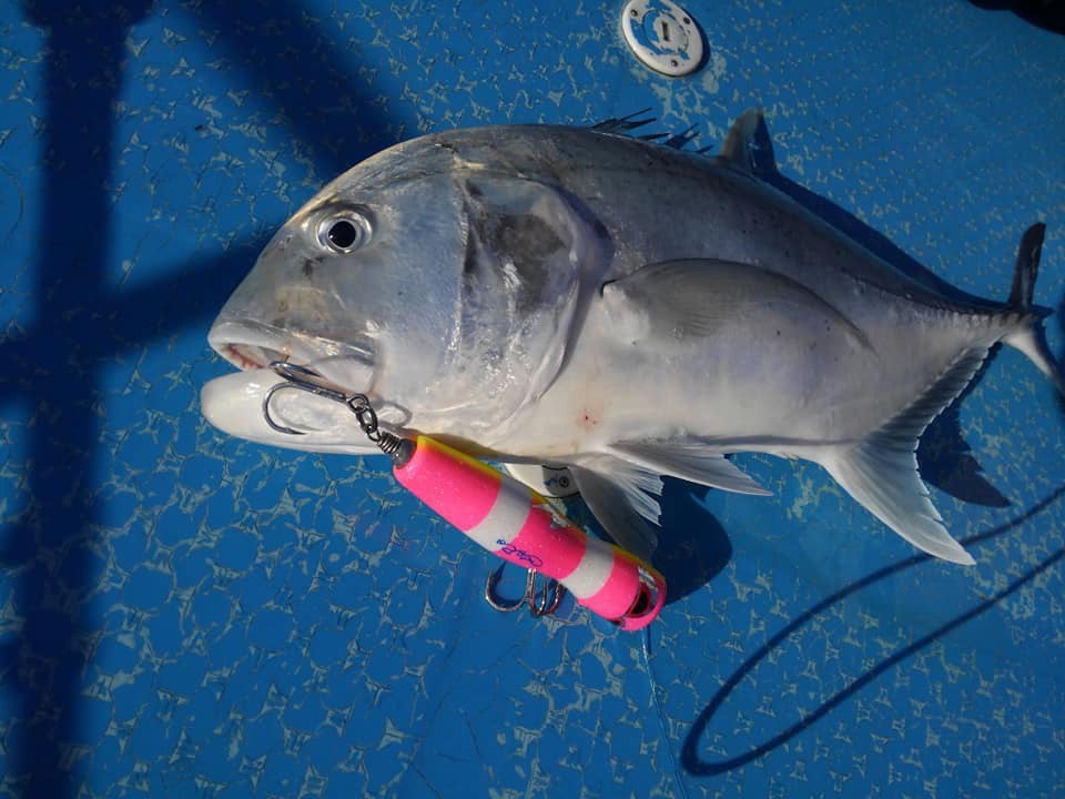 沖のポイントでキャスティングで狙います!メインターゲットはGT30㎏オーバー!