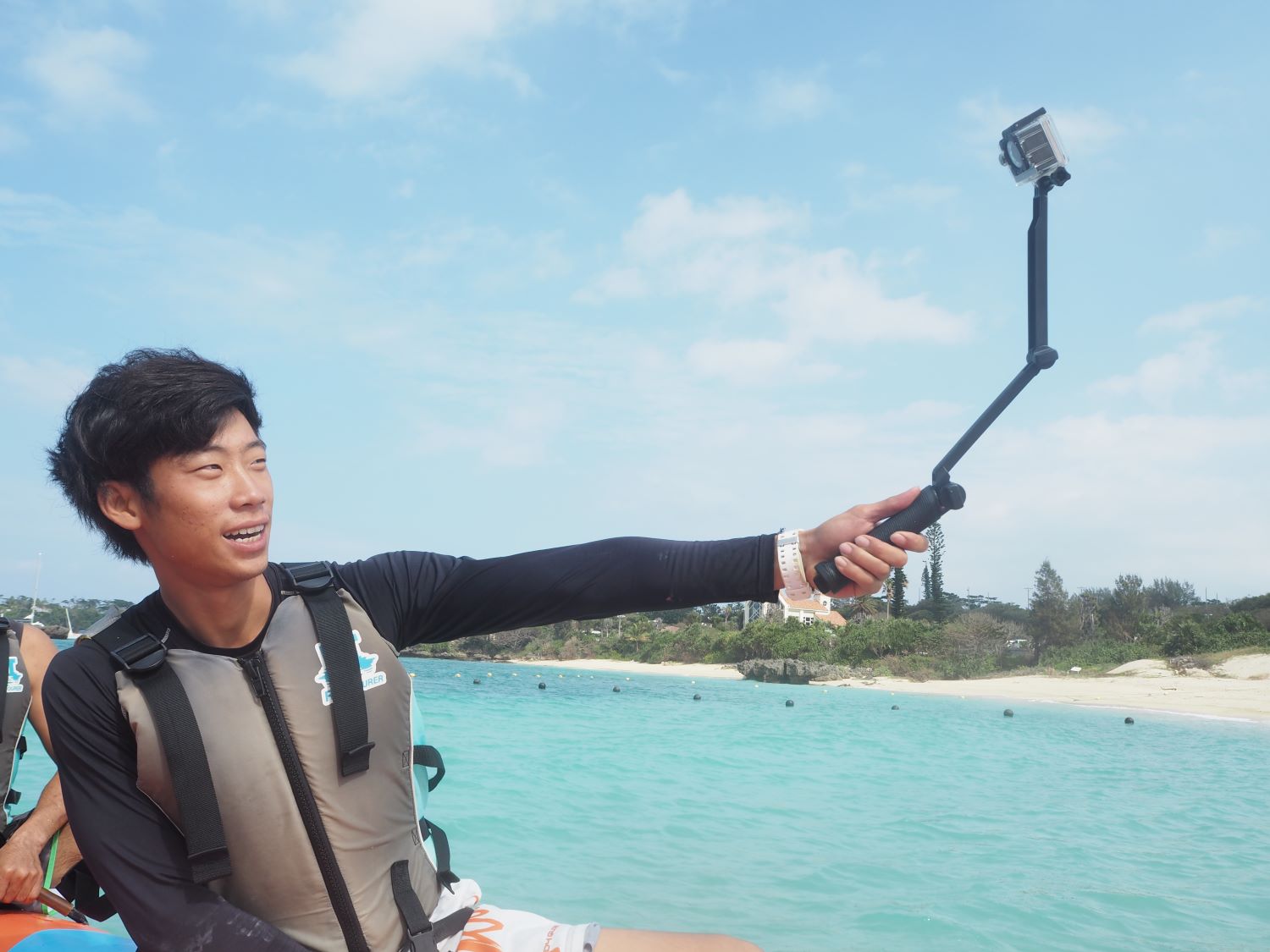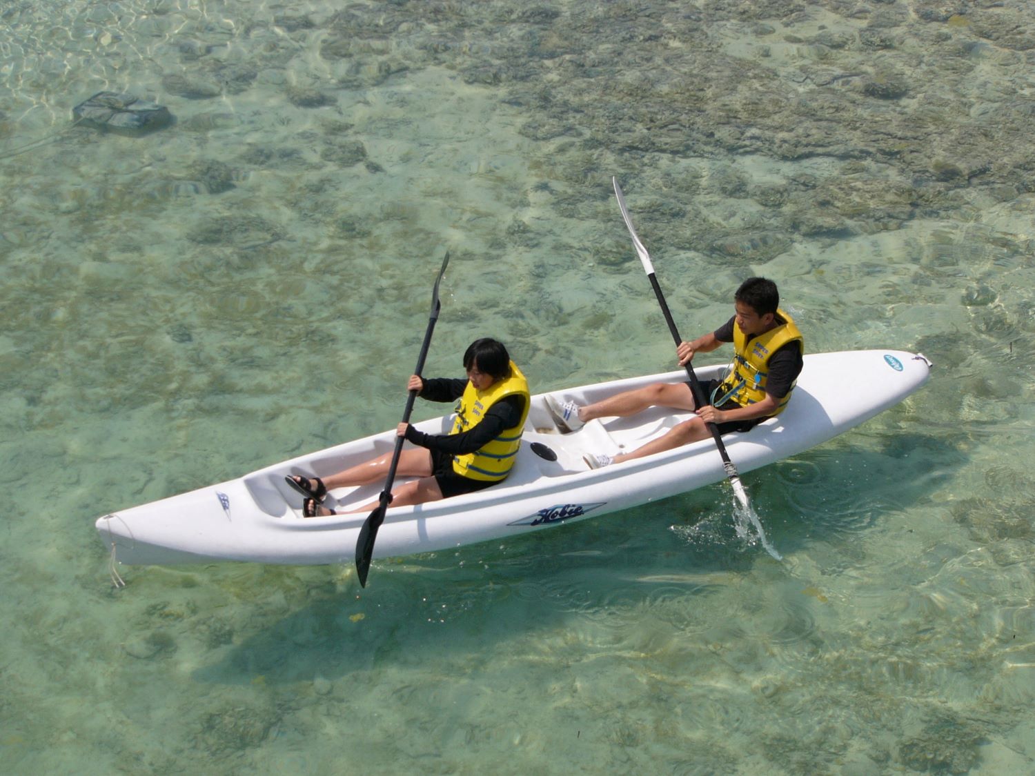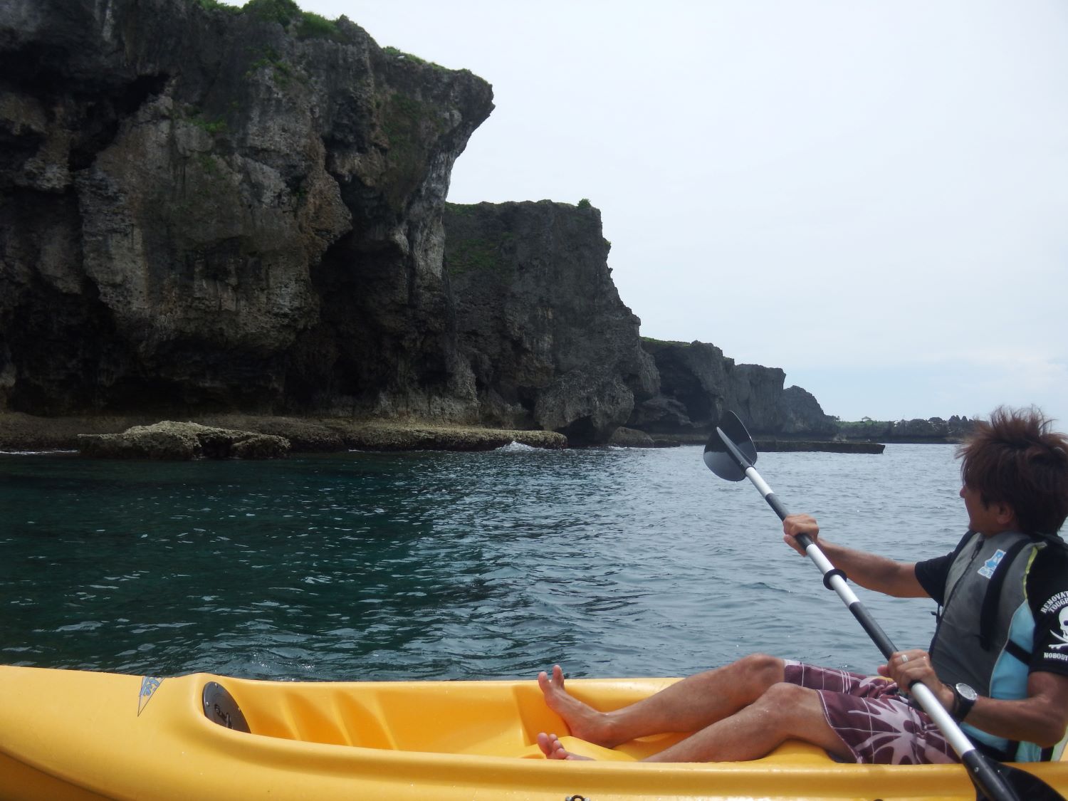 万座毛の近くで海風を感じながらのんびりとカヤック体験が可能![]()
