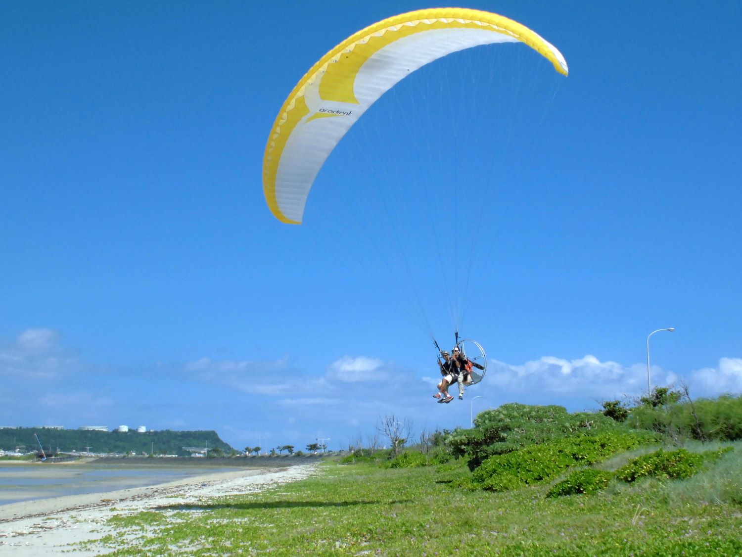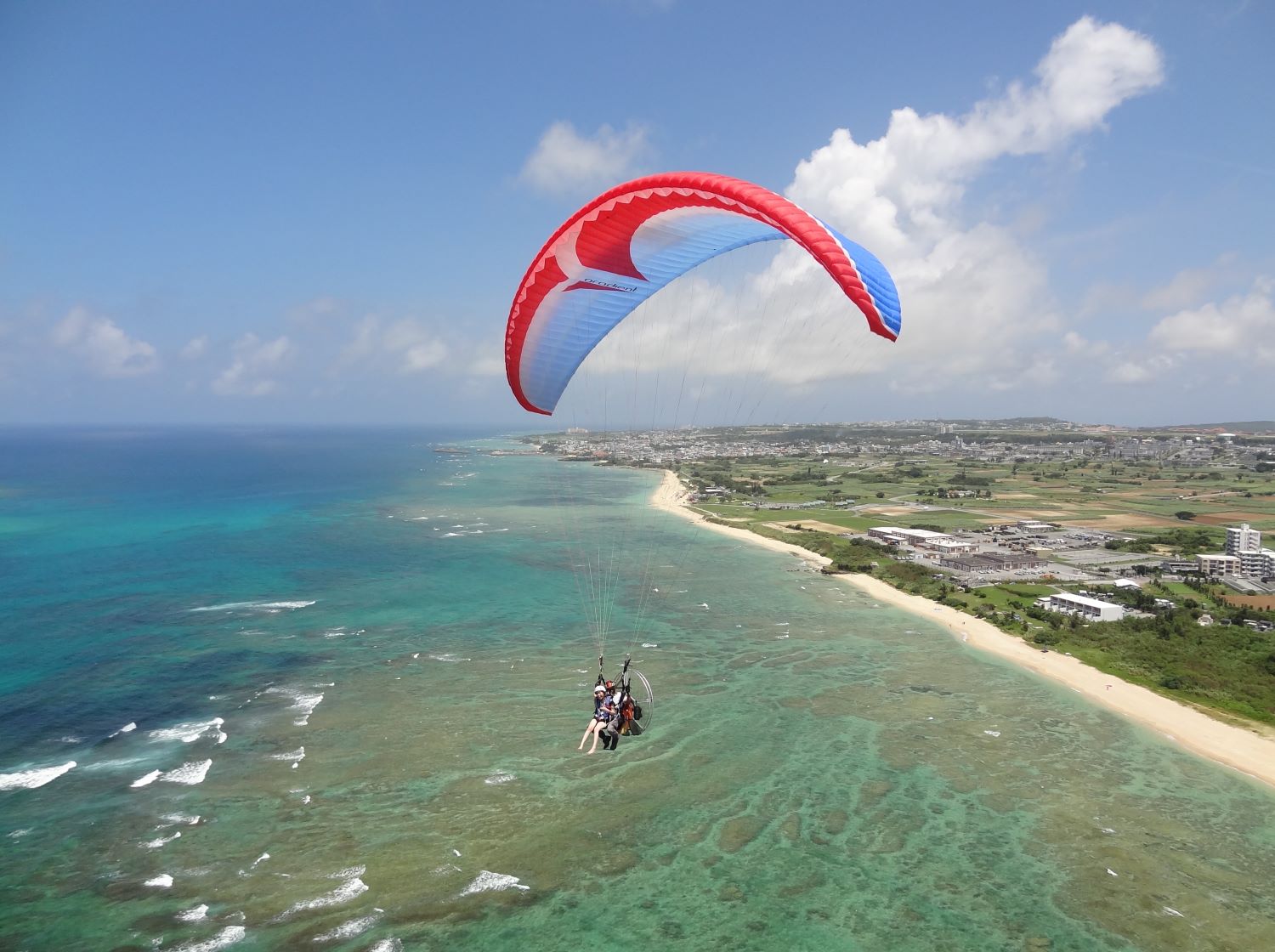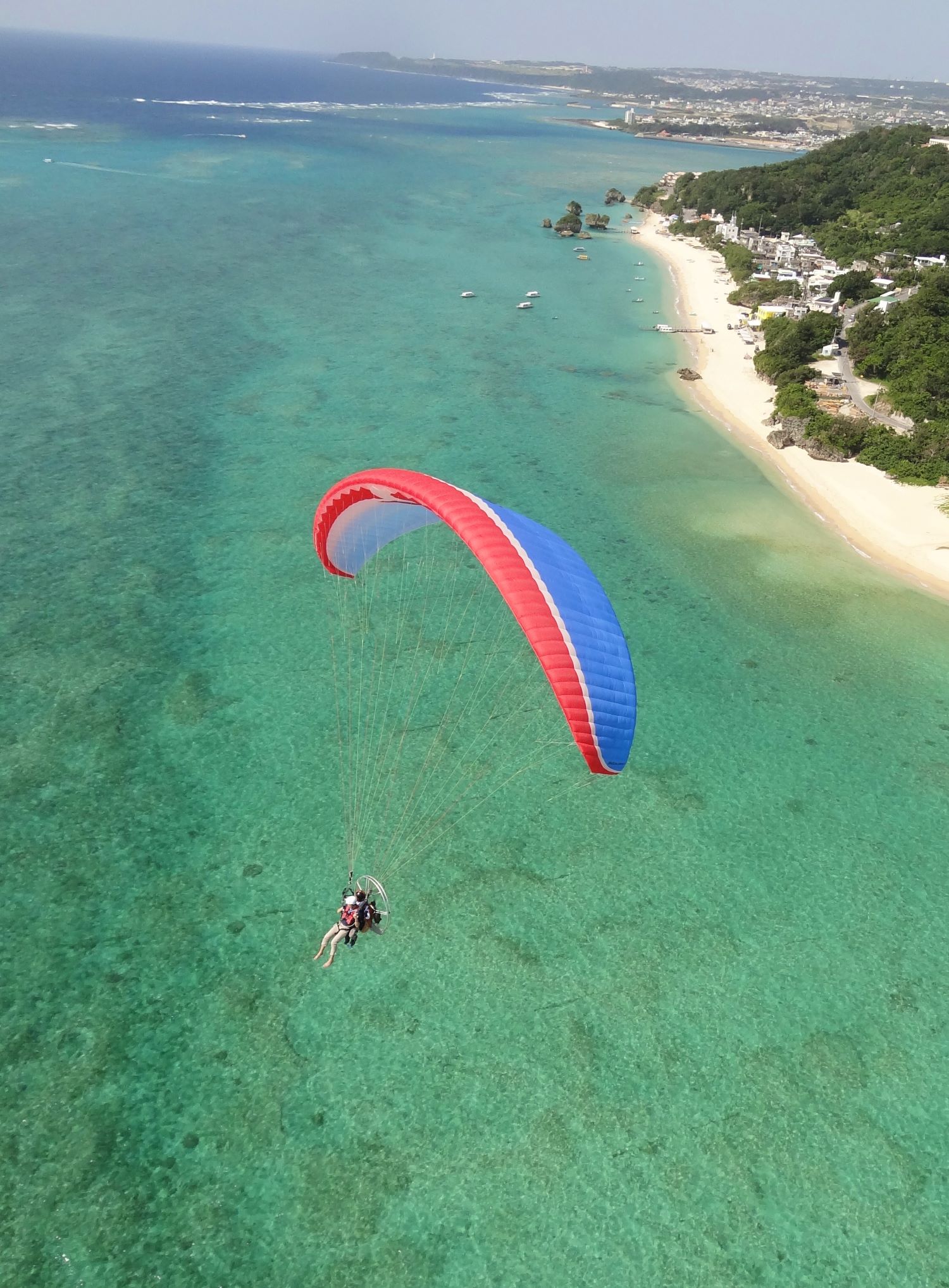 ビーチ等の平地から飛び沖縄の素晴らしいサンゴ礁や海の色、白砂が続く海岸線の景色が楽しめます!!
