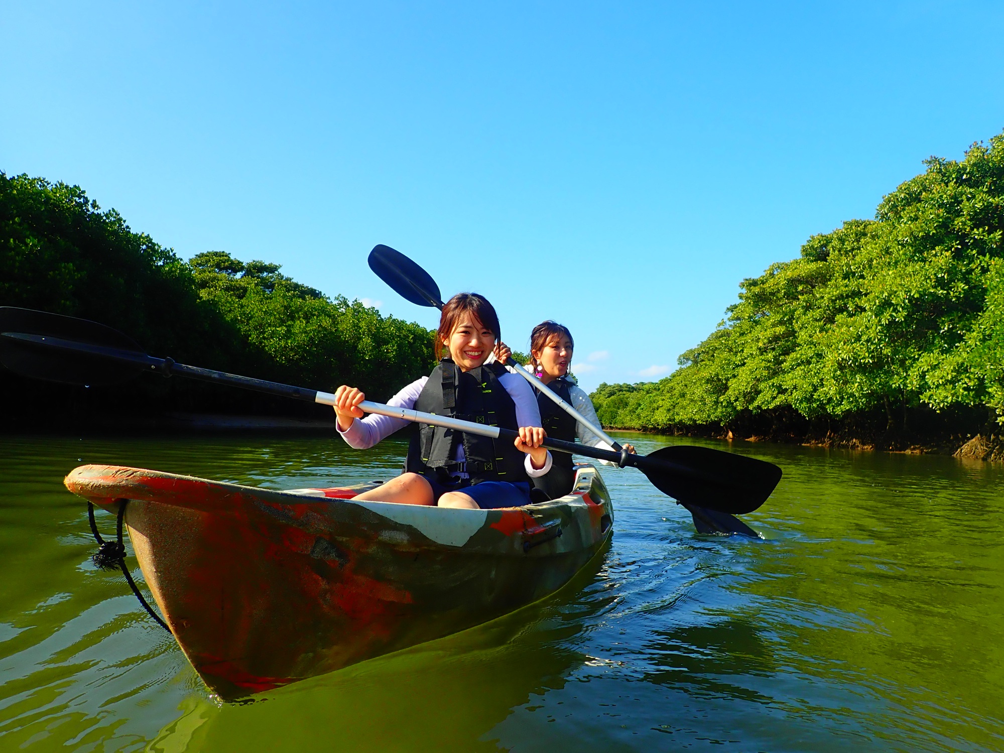 国の天然記念物に指定されているマングローブ林を有する「宮良川」で定番のカヌー体験!